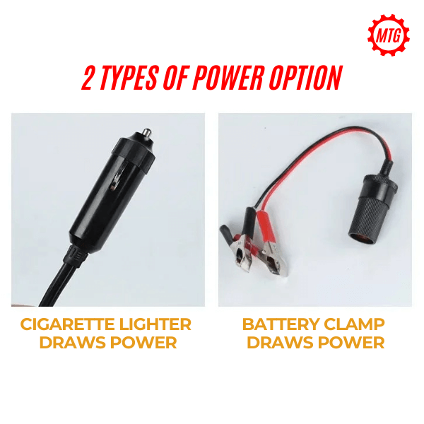 - 🔌 Flexible Power Options: Plug into cigarette lighter or connect directly to battery.